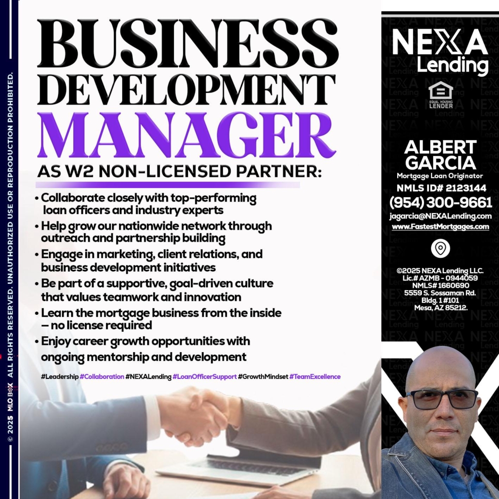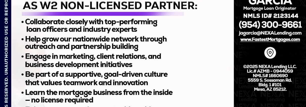 Hi, my name is Alberto Garcia. I’m a Loan Officer with NEXA Mortgage LLC., offering personalized mortgage solutions, fast customized quotes, great rates and service with integrity.