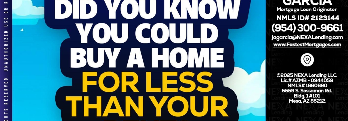 Hi, my name is Alberto Garcia. I’m a Loan Officer with NEXA Lending LLC., offering personalized mortgage solutions, fast customized quotes, great rates and service with integrity.