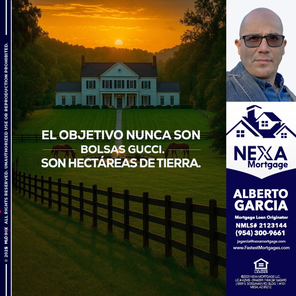 Hi, my name is Alberto Garcia. I’m a Loan Officer with NEXA Mortgage LLC., offering personalized mortgage solutions, fast customized quotes, great rates and service with integrity.