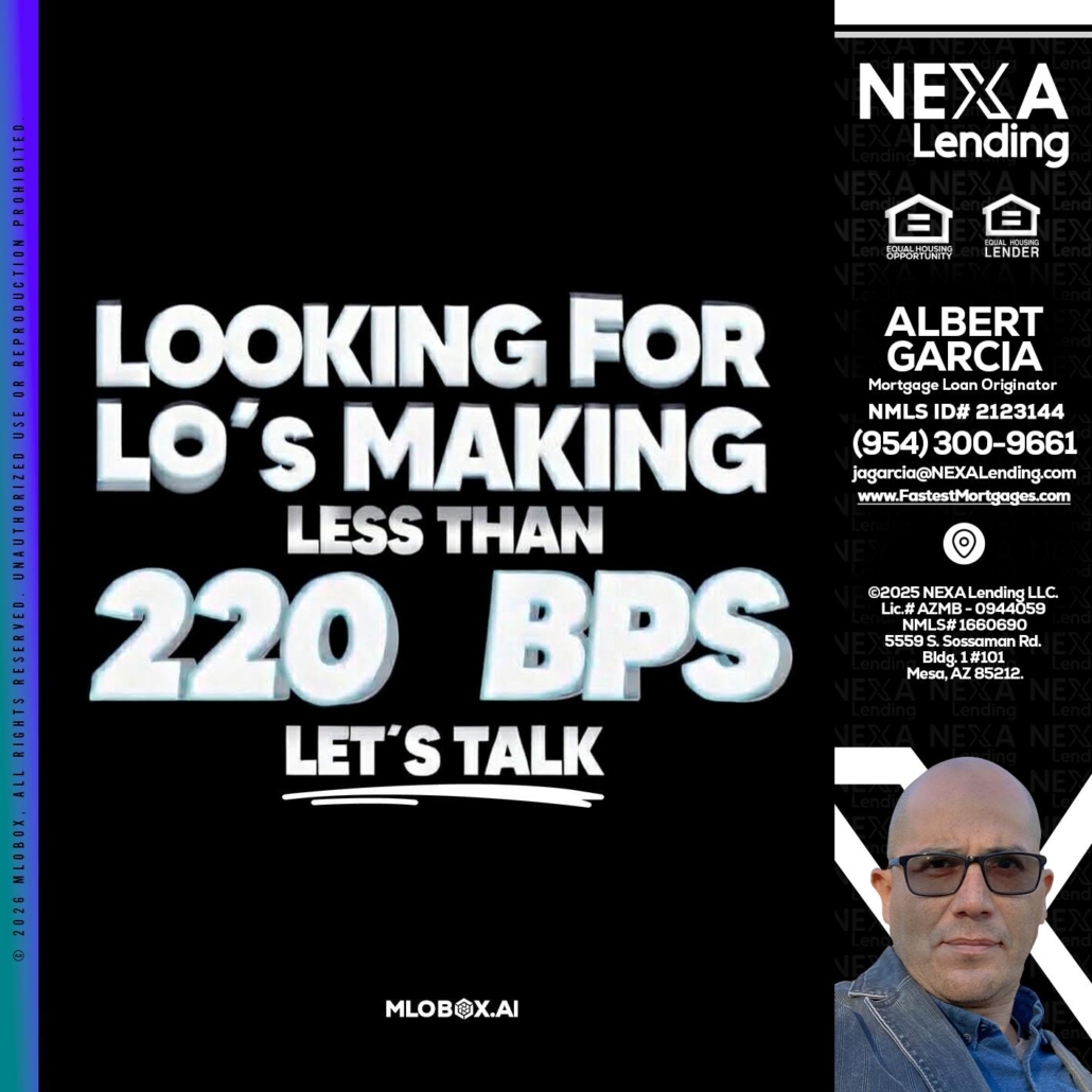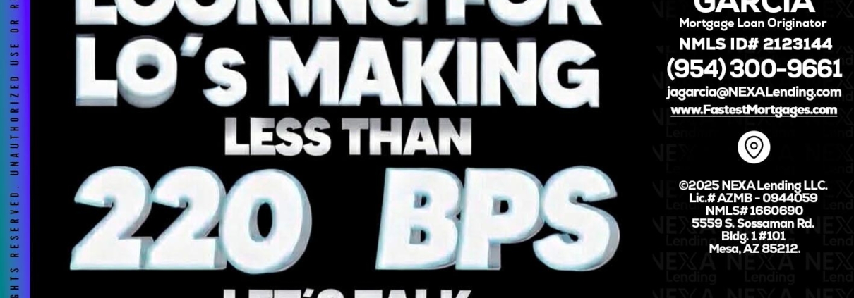Hi, my name is Alberto Garcia. I’m a Loan Officer with NEXA Lending LLC., offering personalized mortgage solutions, fast customized quotes, great rates and service with integrity.