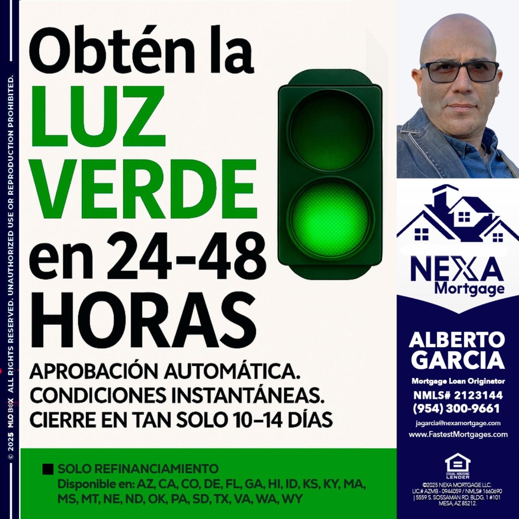 Hi, my name is Alberto Garcia. I’m a Loan Officer with NEXA Mortgage LLC., offering personalized mortgage solutions, fast customized quotes, great rates and service with integrity.