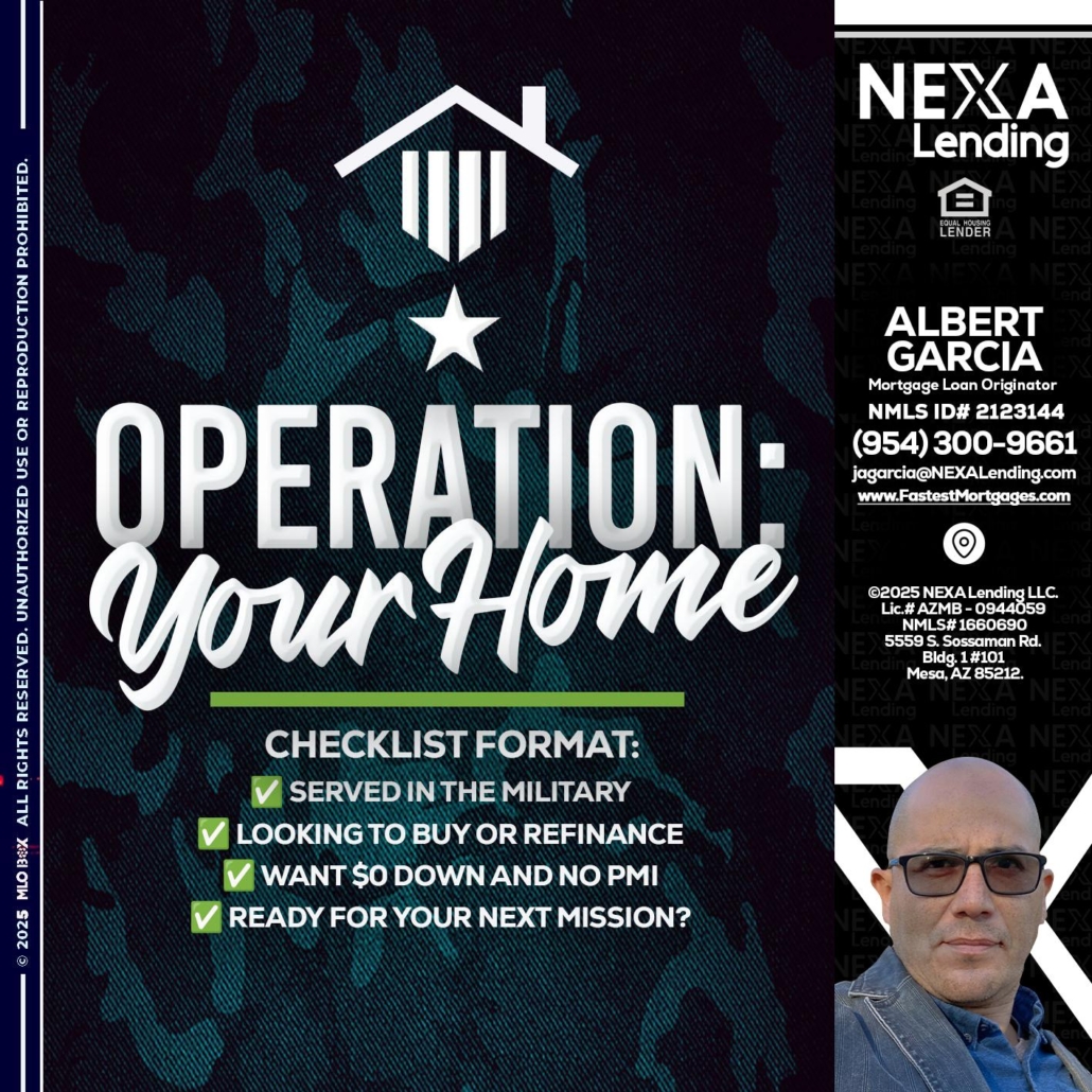 Hi, my name is Alberto Garcia. I’m a Loan Officer with NEXA Mortgage LLC., offering personalized mortgage solutions, fast customized quotes, great rates and service with integrity.