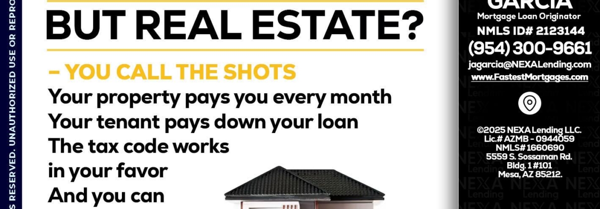 Hi, my name is Alberto Garcia. I’m a Loan Officer with NEXA Mortgage LLC., offering personalized mortgage solutions, fast customized quotes, great rates and service with integrity.