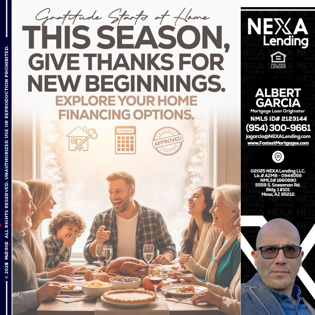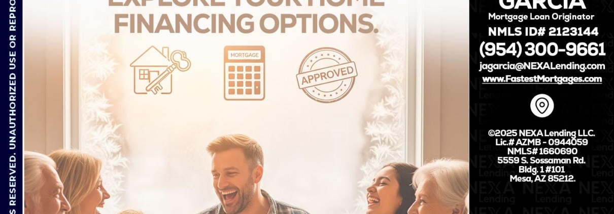 Hi, my name is Alberto Garcia. I’m a Loan Officer with NEXA Mortgage LLC., offering personalized mortgage solutions, fast customized quotes, great rates and service with integrity.