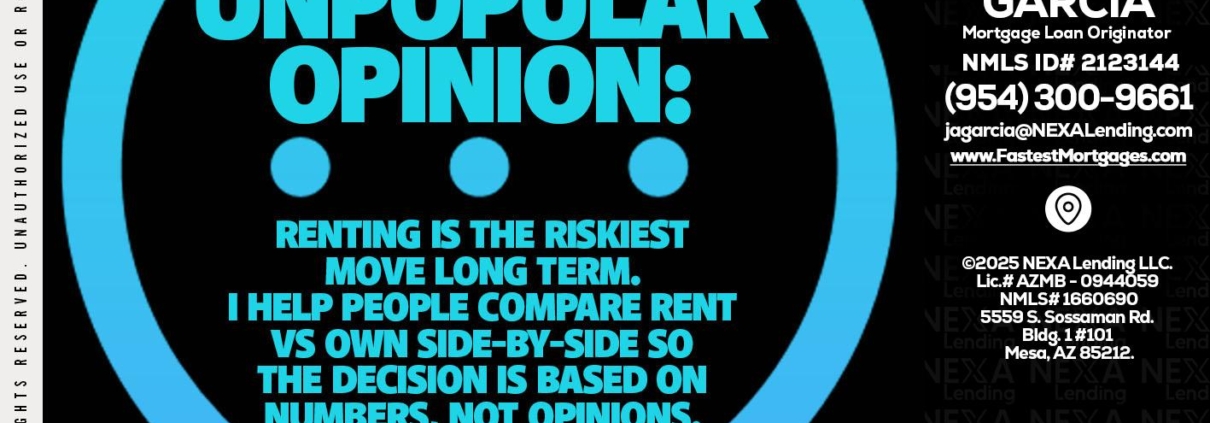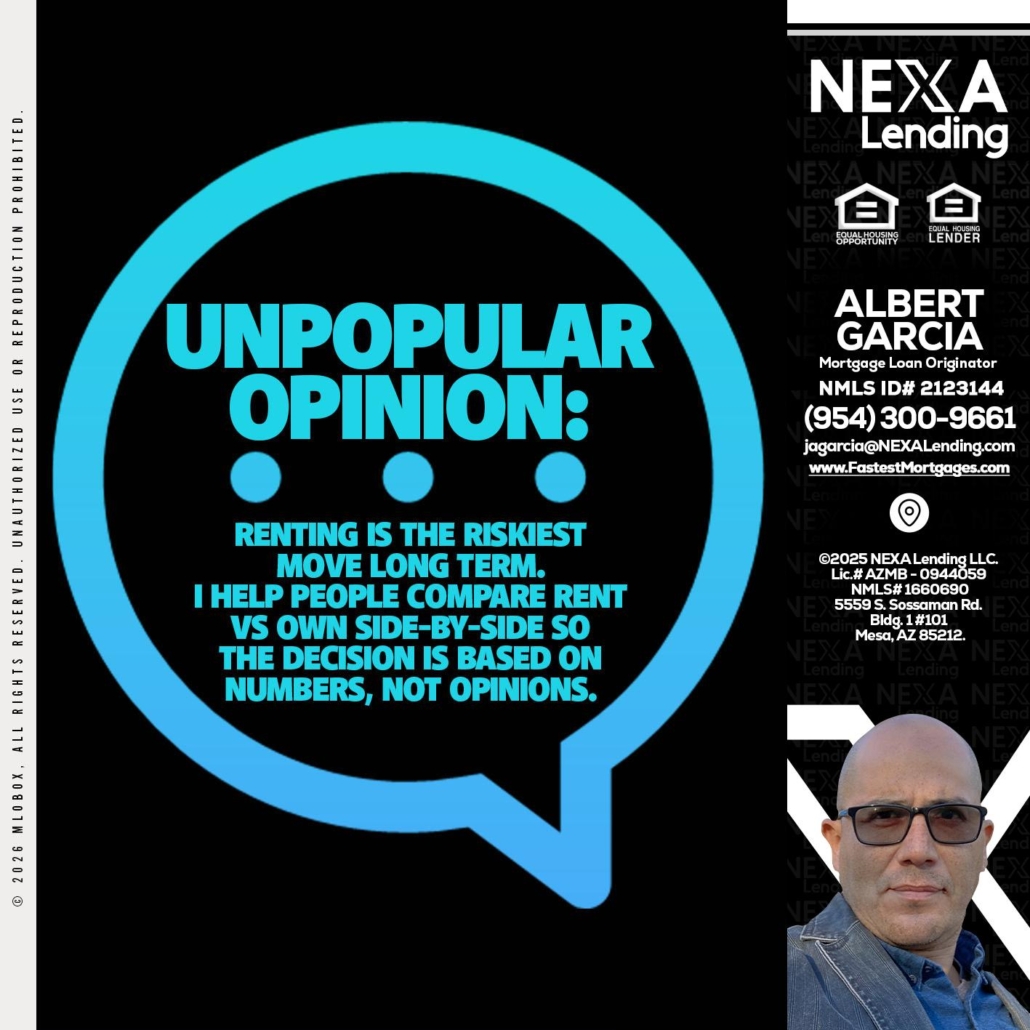 Hi, my name is Alberto Garcia. I’m a Loan Officer with NEXA Lending LLC., offering personalized mortgage solutions, fast customized quotes, great rates and service with integrity.