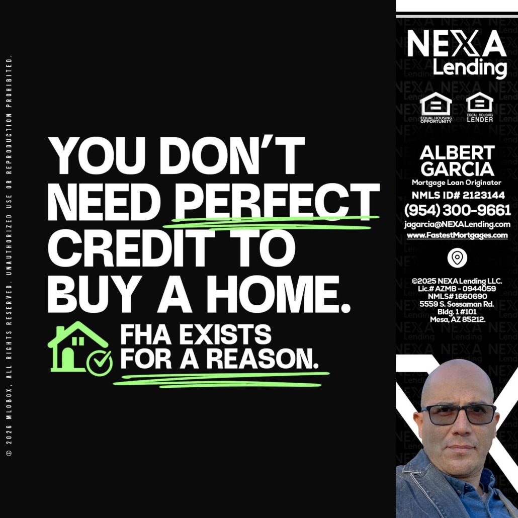 you don't need - Alberto Garcia -Mortgage Loan OriginatorHi, my name is Alberto Garcia. I’m a Loan Officer with NEXA Lending LLC., offering personalized mortgage solutions, fast customized quotes, great rates and service with integrity.