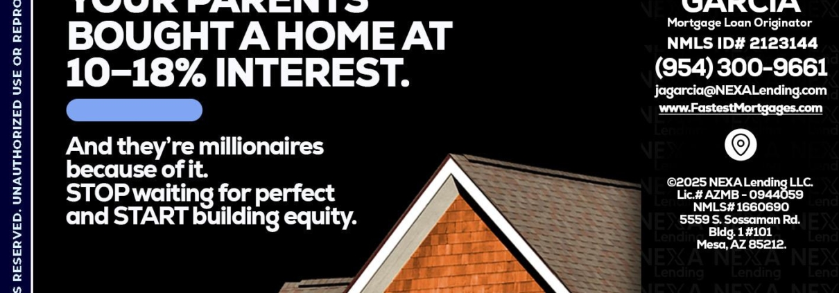 Hi, my name is Alberto Garcia. I’m a Loan Officer with NEXA Mortgage LLC., offering personalized mortgage solutions, fast customized quotes, great rates and service with integrity.